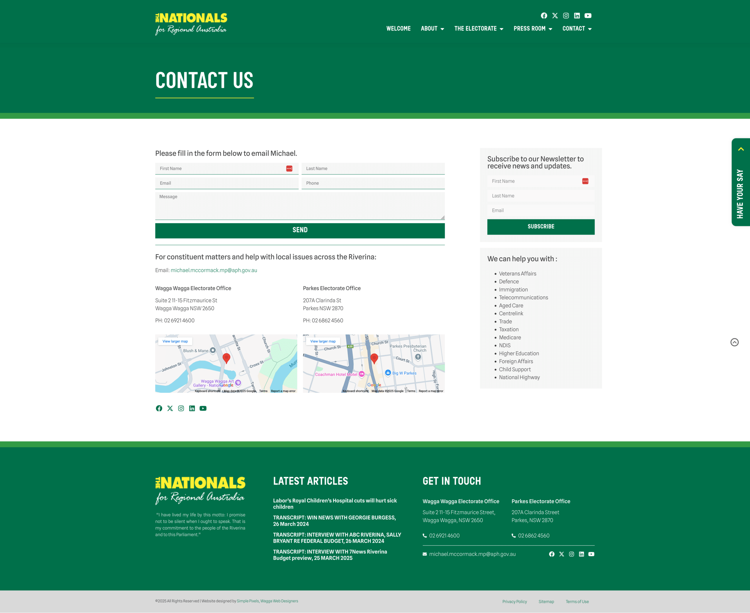 A former journalist and newspaper editor, Michael also co-founded a media business. Passionate about community, military history, and sport, he remains dedicated to representing the Riverina in Federal Parliament.