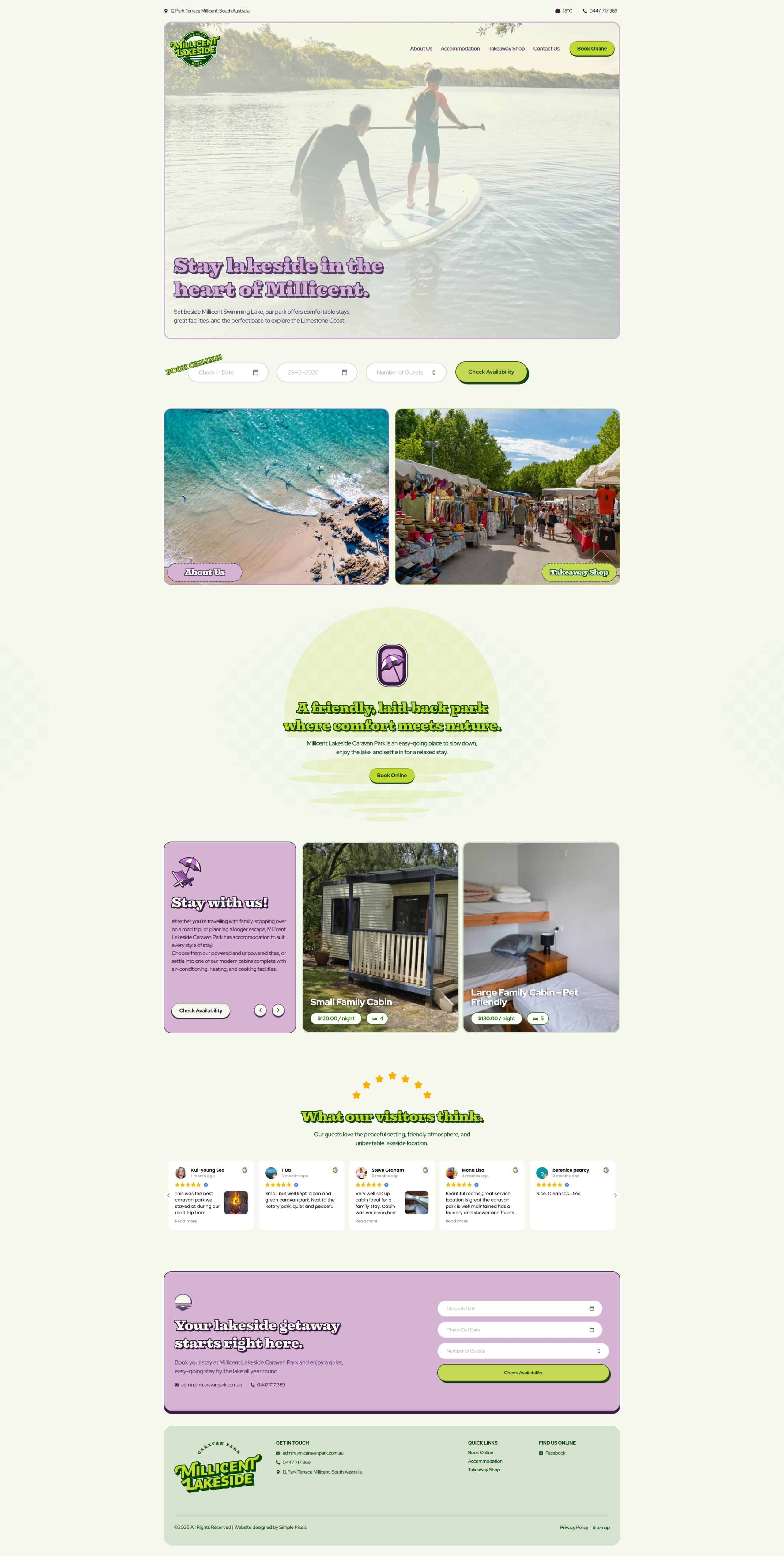 Millicent Lakeside Caravan Park stands as a welcoming accommodation destination redefining the caravan park experience in Millicent since its establishment, delivering peaceful, lakeside stays through genuine hospitality and unbeatable natural surroundings trusted throughout the Limestone Coast region. Operating as a deliberately friendly and laid-back park focused on quality stays and guest comfort, this lakeside haven offers a diverse range of accommodation options including modern pet-friendly cabins, powered ensuite sites, and comfortable budget studios, all set beside the picturesque Millicent Swimming Lake where visitors can slow down, enjoy nature, and settle in for a truly relaxed stay that captures the essence of South Australia’s stunning coastal country.