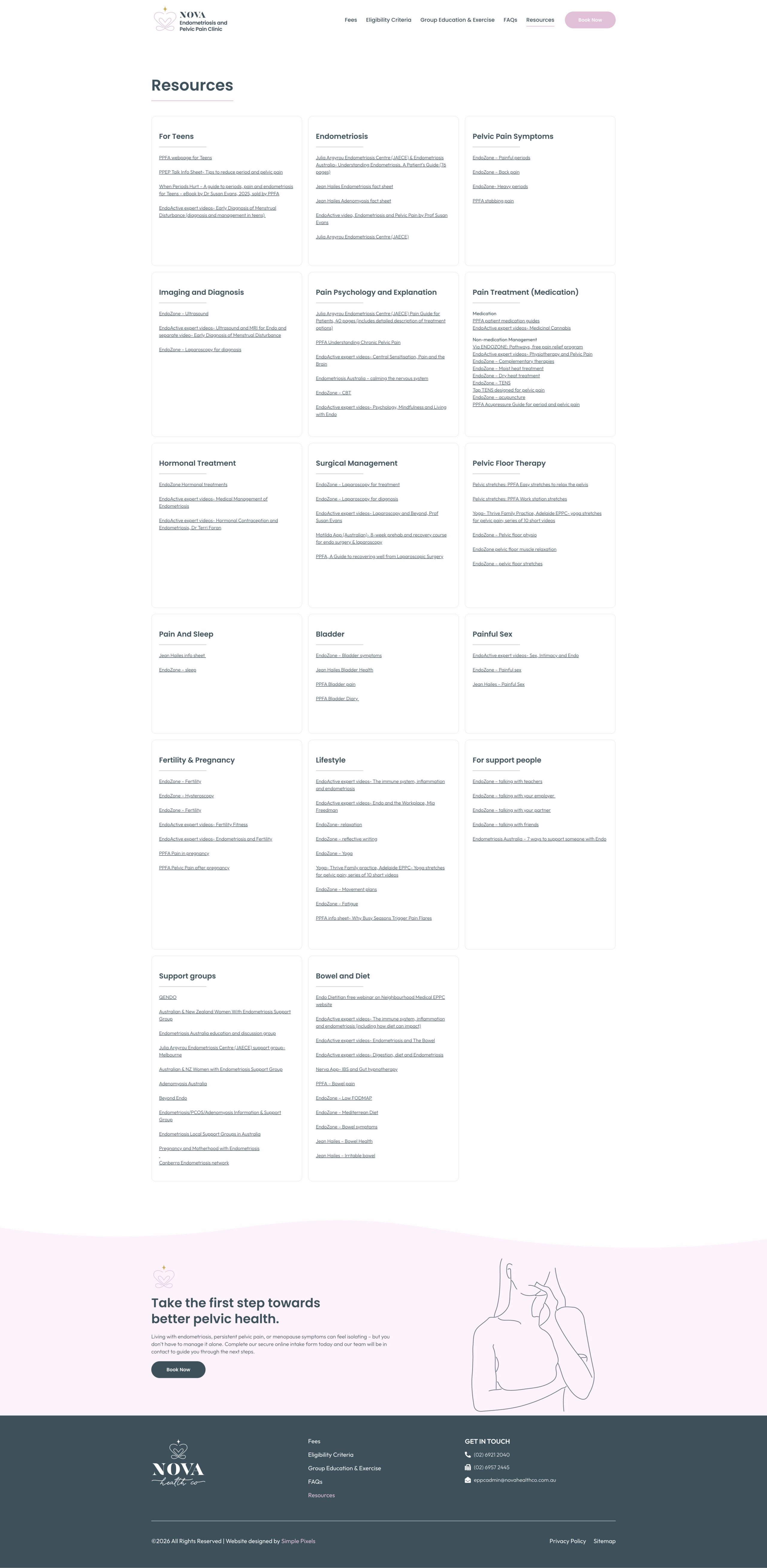Nova Endo offers a comprehensive, patient-centred care program that brings together specialist GPs, women’s health nurses, pelvic health and pain physiotherapists, dieticians, and art therapists — all working collaboratively to address the biological, psychological and social factors that shape each patient’s experience. From initial nurse assessment and personalised GP management plans through to group education and exercise classes, multidisciplinary case conferences, and a structured 12-month care journey, the clinic is built around one goal: ensuring that nobody has to manage endometriosis or pelvic pain alone.