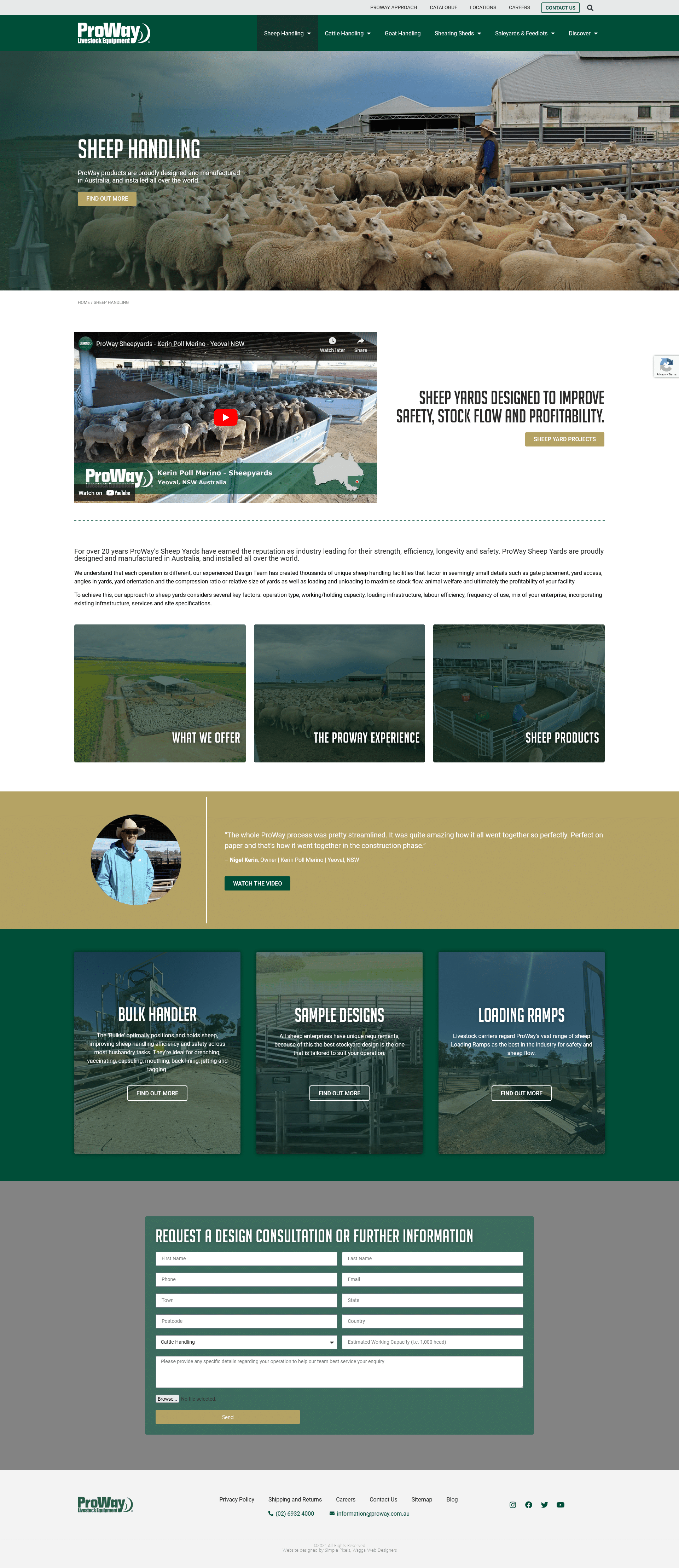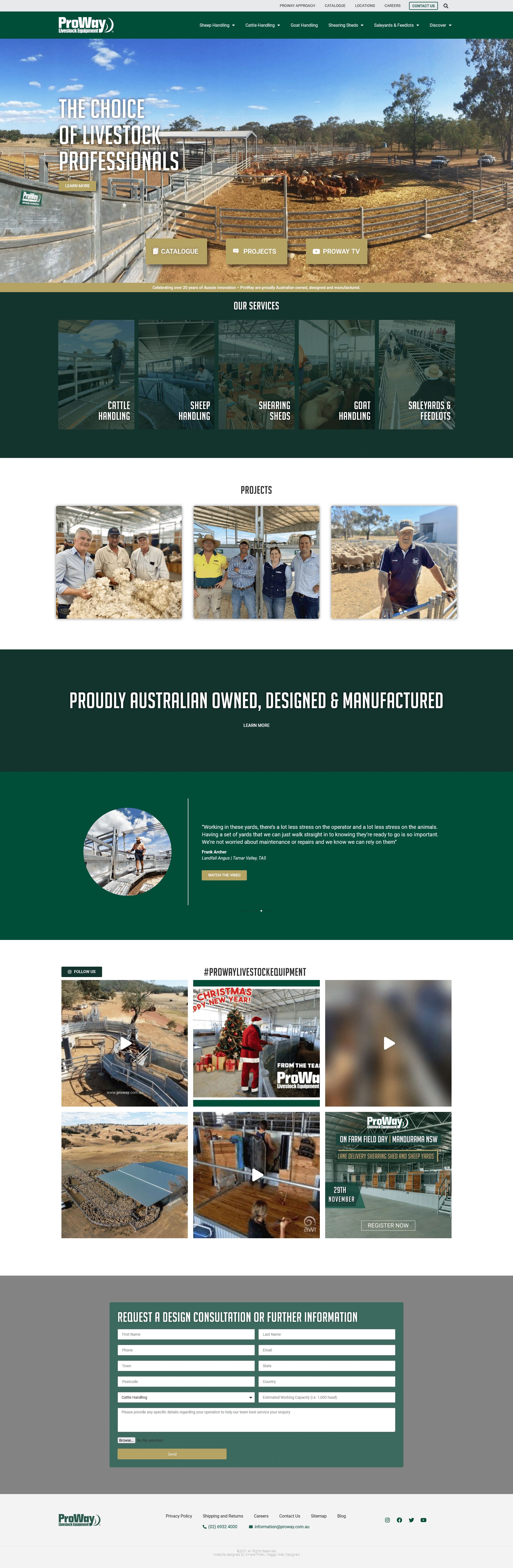 Our website for ProWay goes beyond borders, with dedicated Australian and US sites tailored to the specific needs of each market. Extensive SEO work and geolocating integrations ensure that users from every corner of the globe can access the wealth of information seamlessly. Dive into our site, featuring an integration of 3D models and viewers, along with a comprehensive product list and custom enquiry forms. Choose Simple Pixels for a website that not only mirrors the global impact of ProWay but also provides a user-centric platform for livestock professionals worldwide to explore and engage with their cutting-edge equipment.