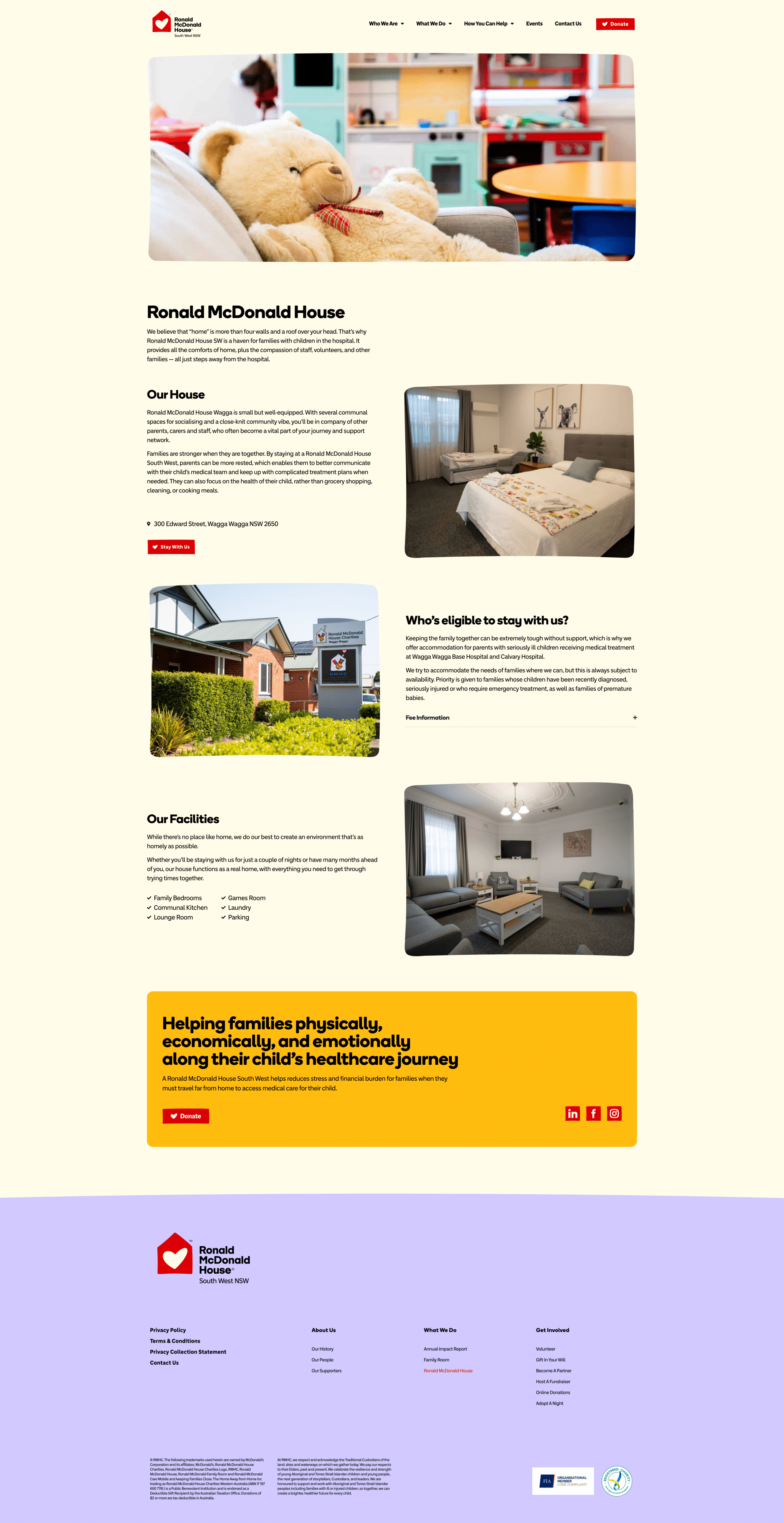 Ronald McDonald House South West NSW is a not-for-profit charity based in Wagga Wagga, providing free accommodation and wraparound support for families who must travel away from home to access medical treatment for their seriously ill or injured child.