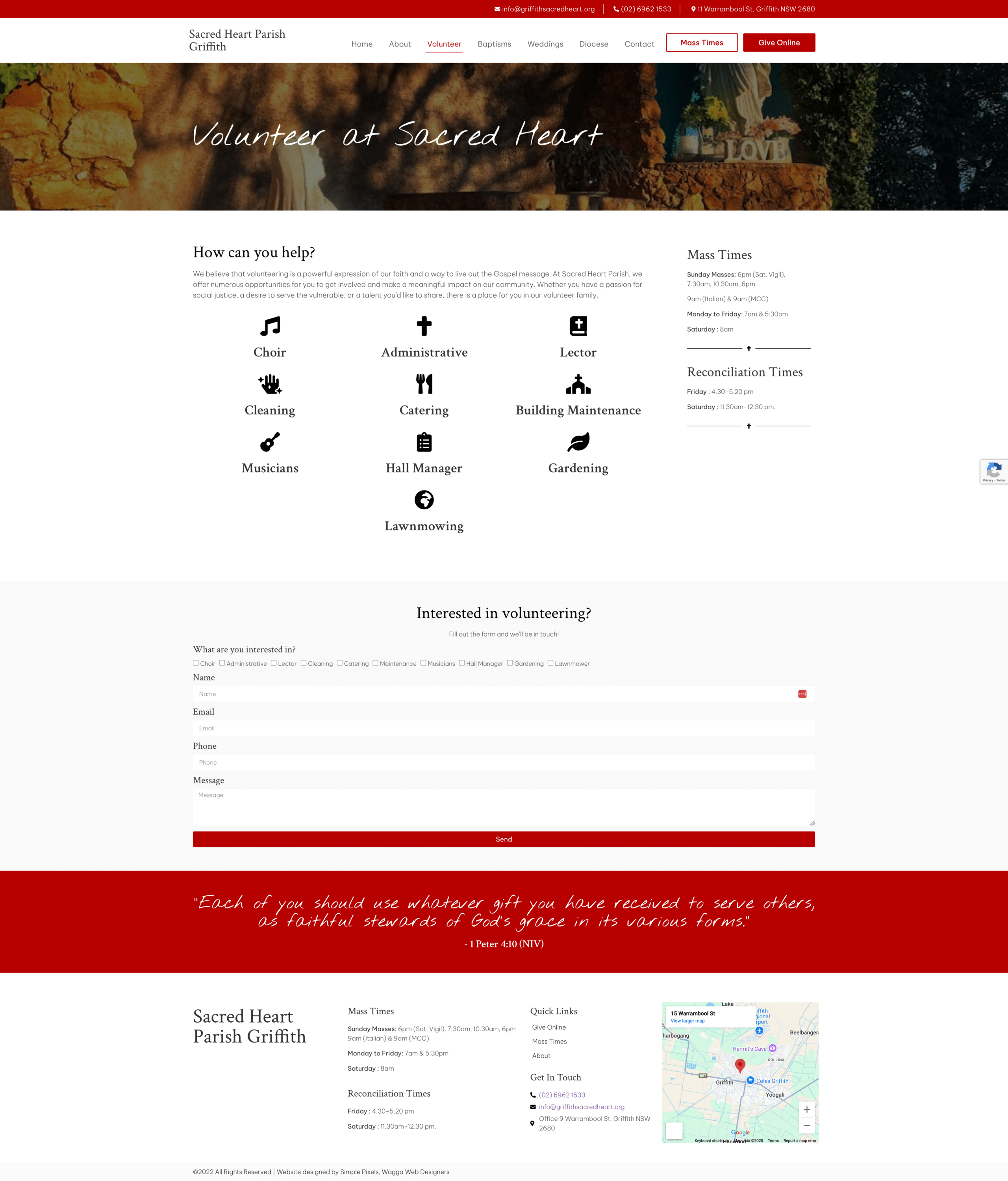 Established in 1921, Sacred Heart Parish has been an integral part of the Griffith community and surrounding areas. Over the years the parish has grown in size and spirit, nurturing generations of Catholics and fostering a deep sense of faith, fellowship, and service.