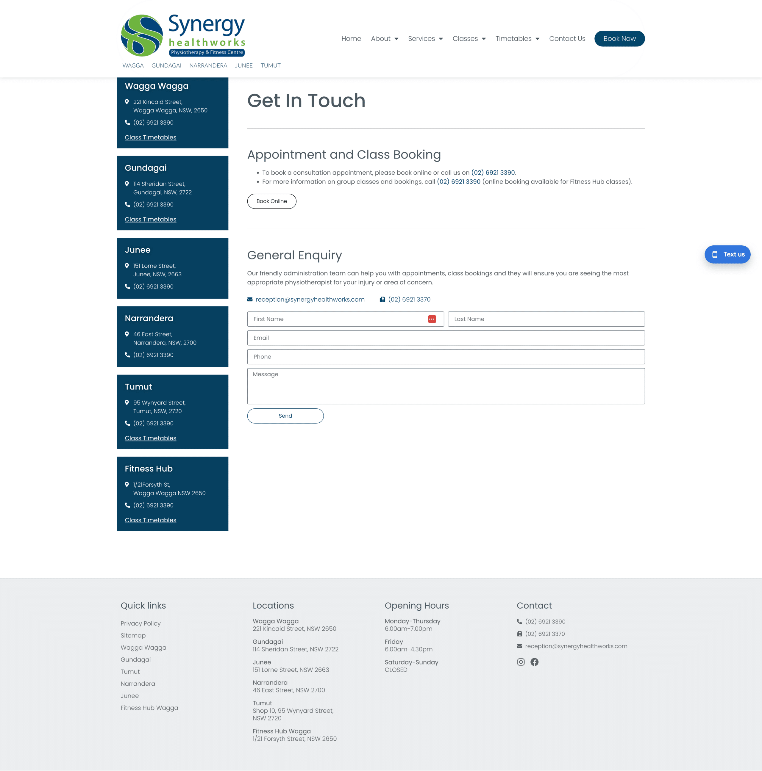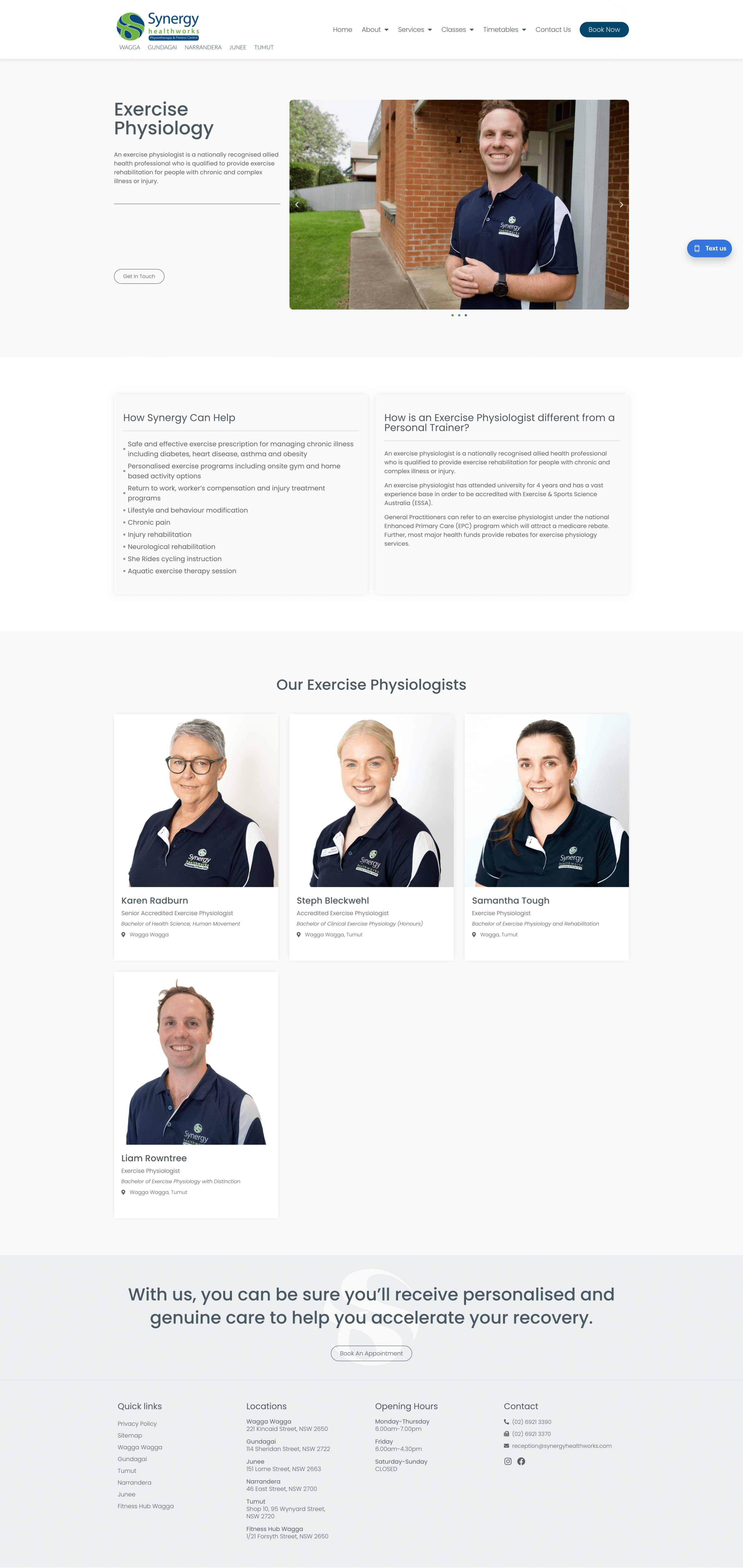 Synergy Healthworks Physiotherapy & Fitness Centre proudly serves Wagga Wagga, Gundagai, Narrandera, Tumut, and Junee. They offer a full range of physiotherapy, rehabilitation, wellness, and allied health services designed to meet your needs. With their voluntary Practice Accreditation, you can trust they’ll meet the highest industry standards.