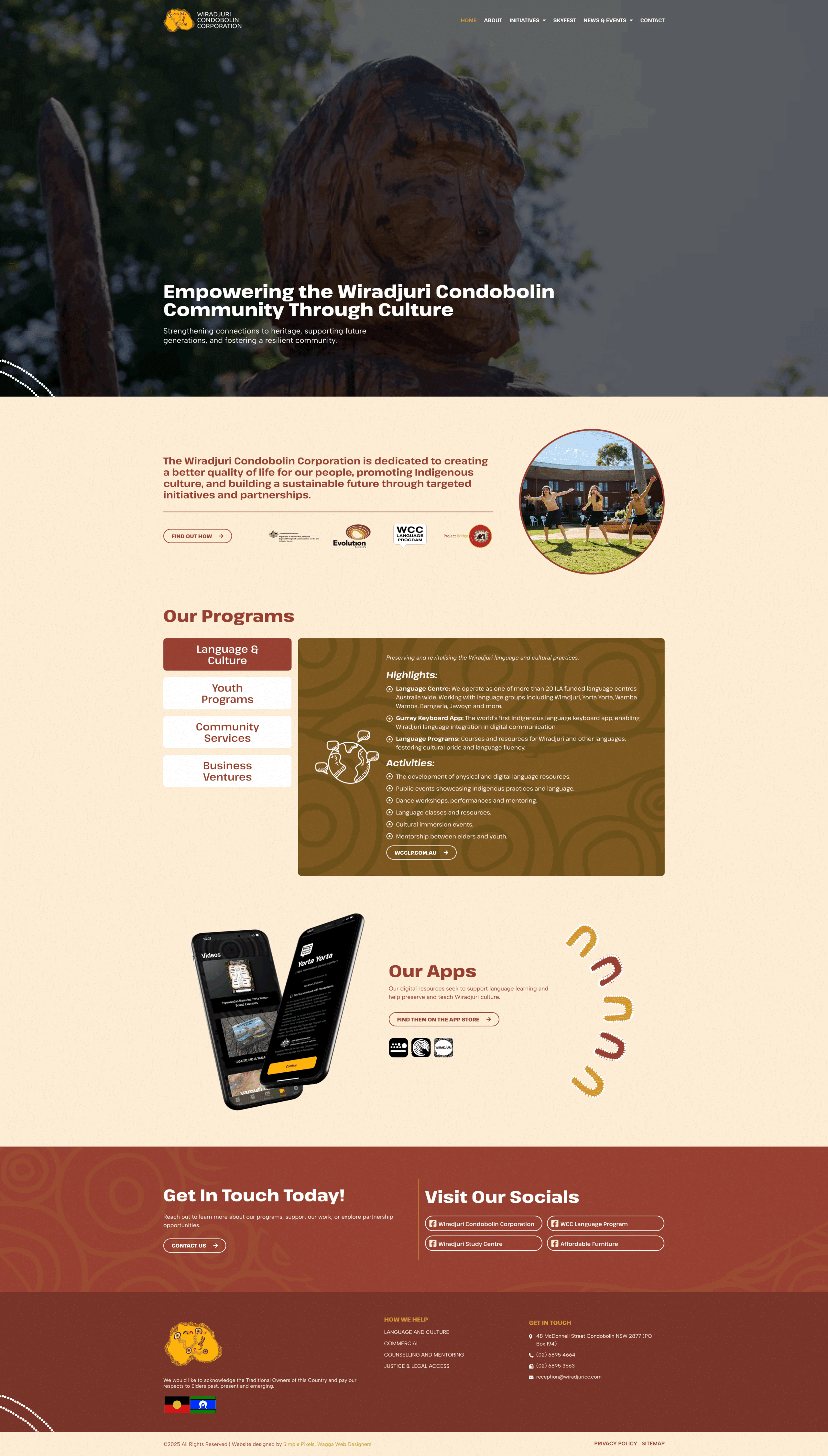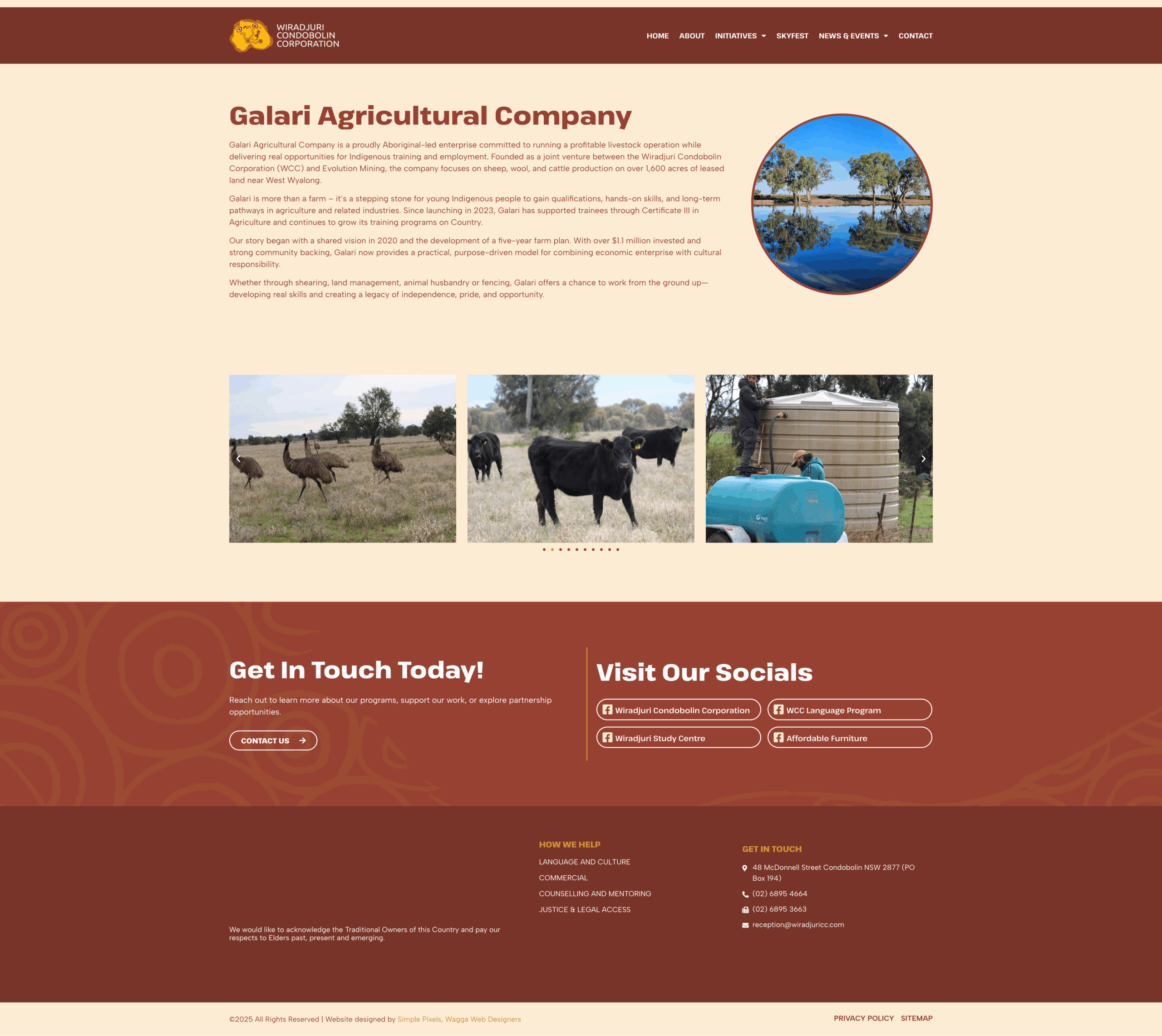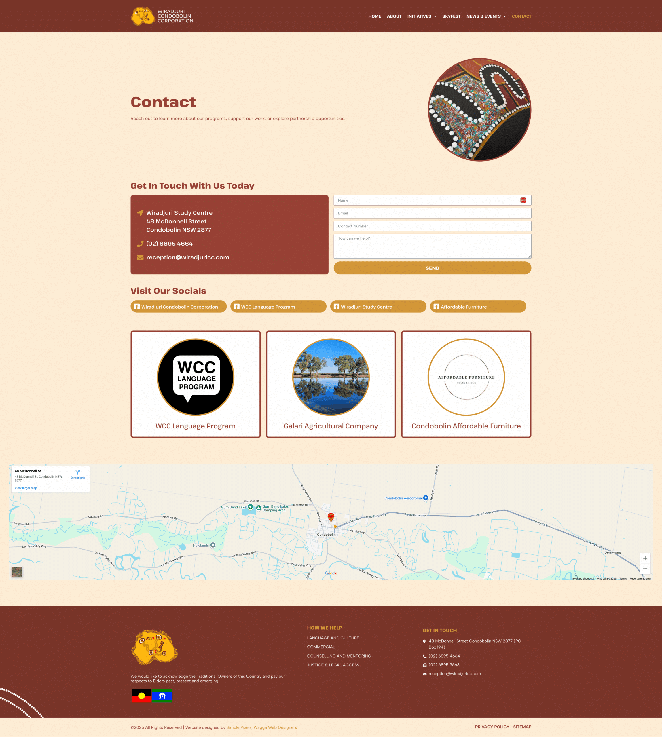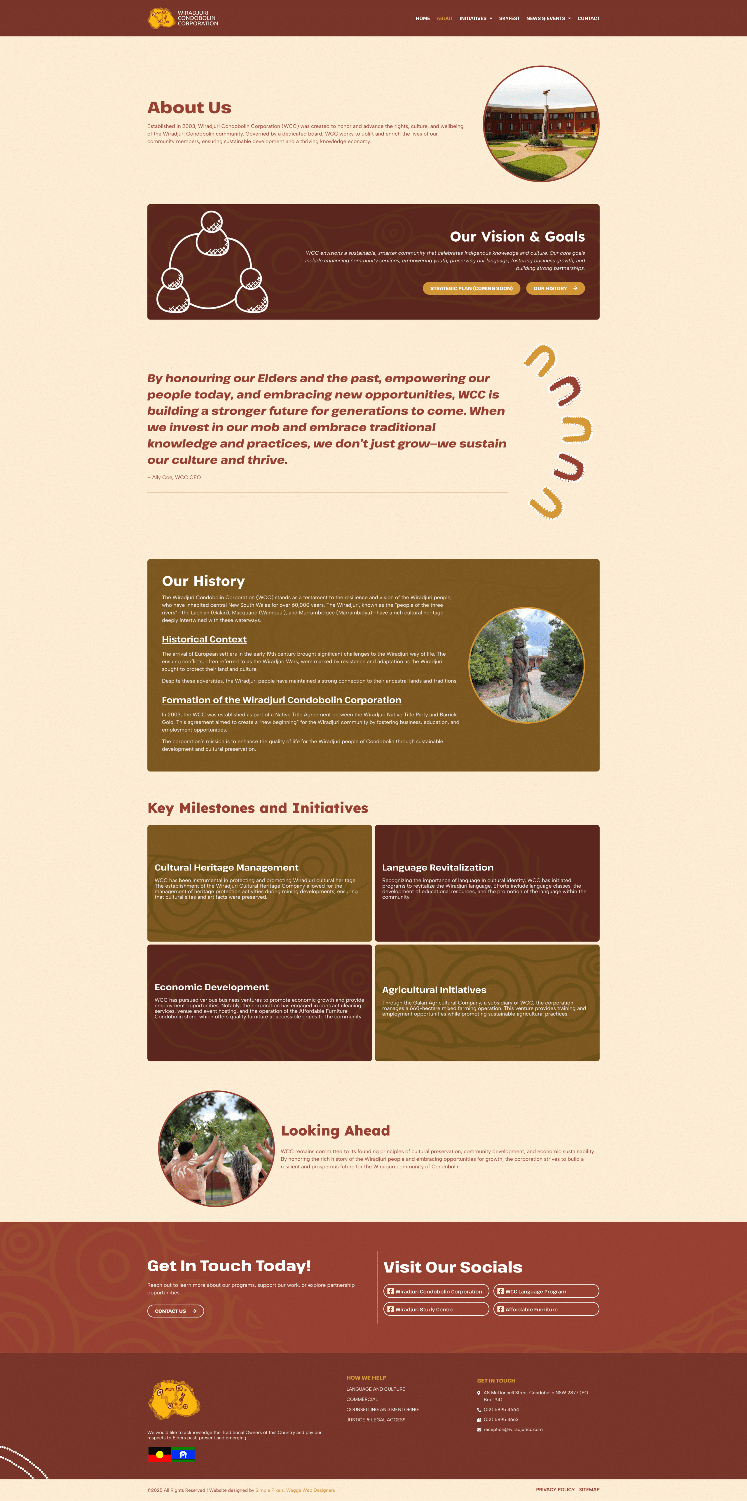 The Wiradjuri Condobolin Corporation (WCC) aims to create a better quality of life for the people of the Wiradjuri Condobolin community. To establish a sustainable, smarter community and a knowledge economy, through the business activities and the programs emanating from the Wiradjuri Study Centre (WSC).